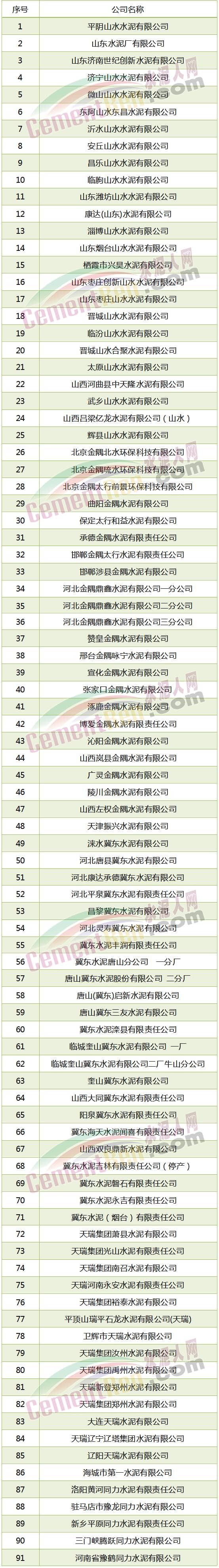 京津冀及周边部分水泥企业名单