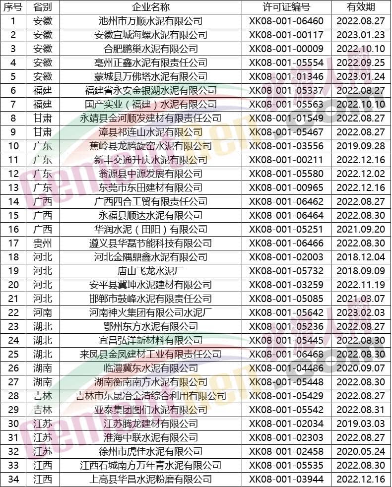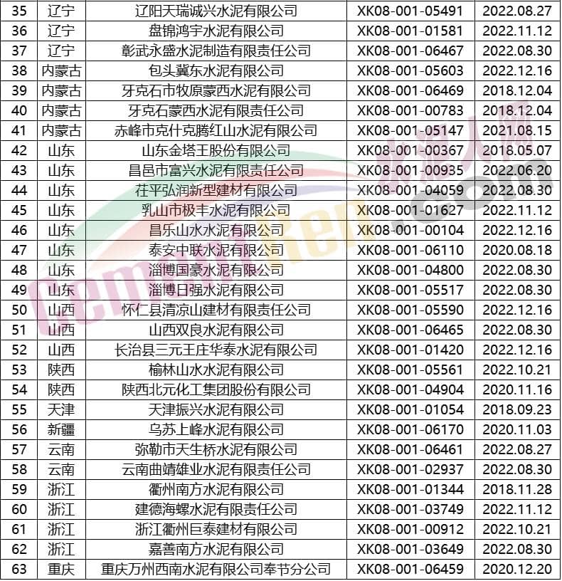 名单 | 最新一批获证企业名单发布 涉及63家水泥企业(附名单)