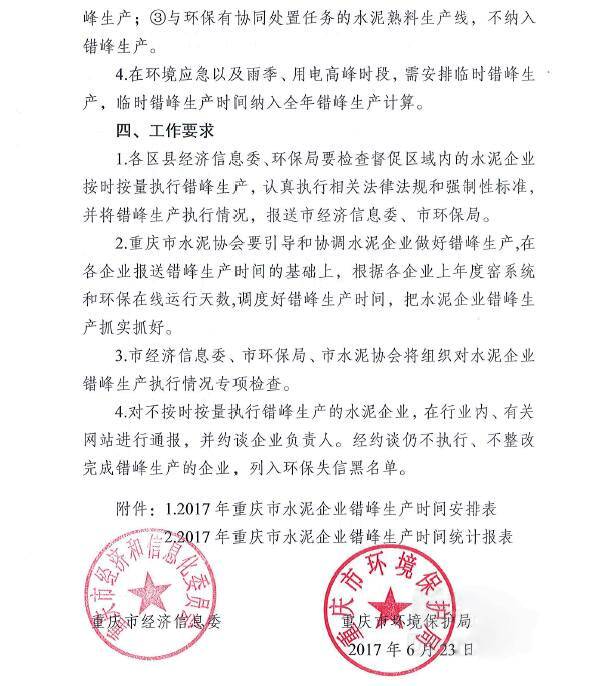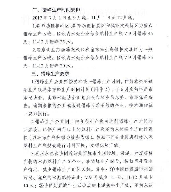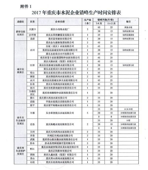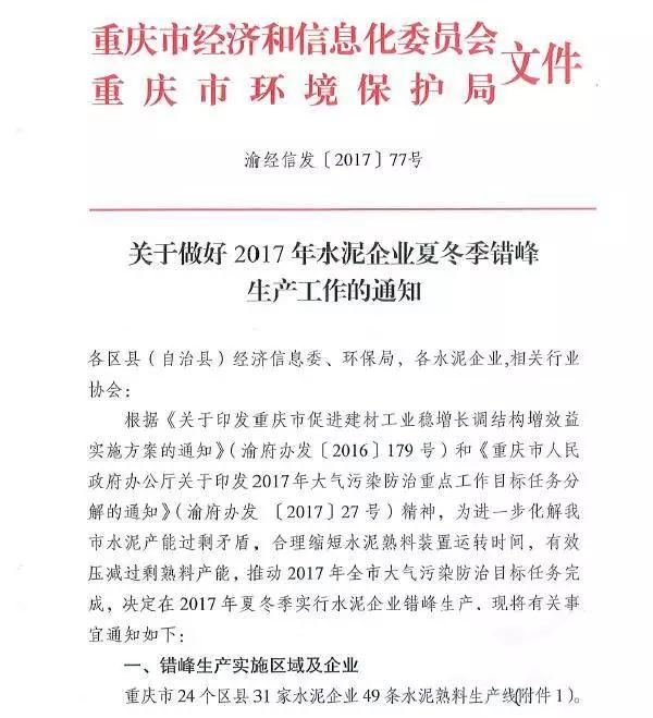 重庆市经信委会和环境保护局此前联合下发的《关于做好2017年水泥企业夏冬季错峰生产工作的通知》要求,7-9月间,企业平均停窑天数在35-45天之间。