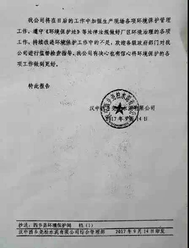 汉中西乡尧柏水泥有限公司已经向环保部门出具了整改报告,据了解,对于该公司的此次整改是否达标,西乡县环保局尚未对其进行验收。