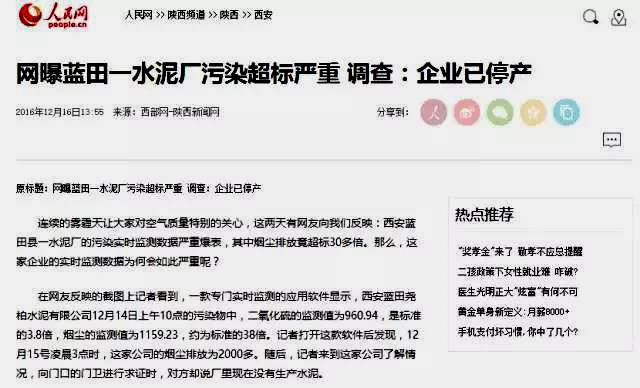 而同属于尧柏水泥集团另一子公司西安蓝田尧柏水泥有限公司也曾被爆出环保污染问题: