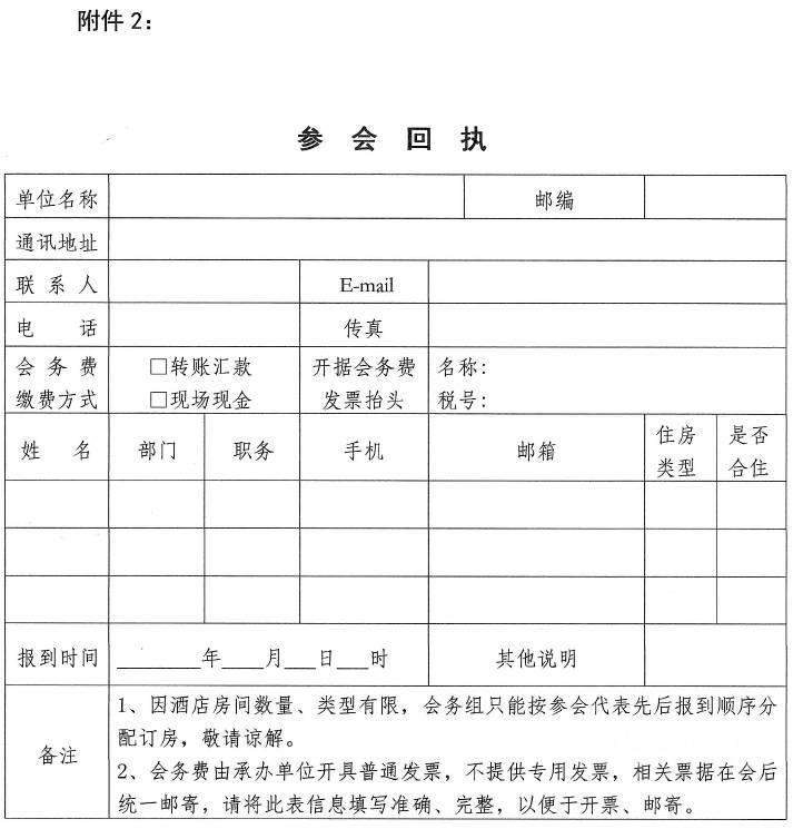 4、会议回执请于2017年10月9日前传真或电子邮件至会务组。