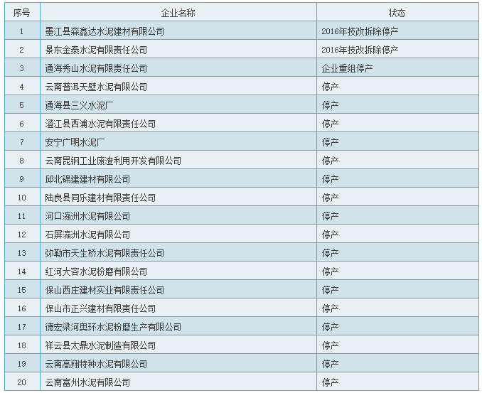 【水泥人网】近日,云南、四川省根据工业和信息化部关于印发2017年工业节能监察重点工作计划的通知》(工信部节函〔2017〕95 号)要求,分别发布2016年水泥企业能耗限额标准及阶梯电价政策执行情况。然而,据水泥人网了解,在这其中,有部分水泥企业及粉磨站处于停产状态。