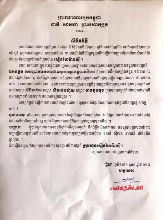 10月14日,我们根据和平岛报和新柬埔寨两家柬文媒体的新闻,对某中资水泥厂发生纠纷一事做了报道。 报道一经发出后,该中资水泥厂第一时间联系了我们。我们受该中资水泥厂的委托,在此做一个澄清报道。