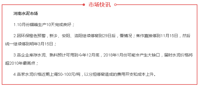 采暖季临近,北方各省错峰生产即将开启,水泥价格也成水泥人关注的焦点话题。昨日(26日)午间,水泥人网信息部收到消息称河南省部分地区水泥价格再次上调。 经水泥人网信息部确认,河南省区域主导企业昨日午间率先发布提价通知称:42.5袋/散统一上调50元/吨,32.5袋/散统一上调30元/吨,预计后期区域内其他企业会陆续跟涨。