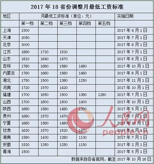 据了解,吉林、河南、山西、宁夏等多地在国庆节后开始执行新的最低工资标准。事实上为着力保障低收入劳动者权益,2017年以来至少已有18个省份调高了最低工资标准。