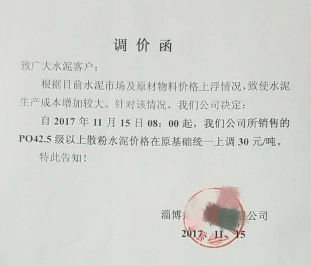3、 淄博地区目前部分企业处于停窑状态。部分水泥企业上调水泥价格,累计幅度为50元/吨。目前P.O42.5散装水泥价格维持在440-450元/吨; 部分企业将于近两日上调水泥价格。停窑情况暂未完全落实。