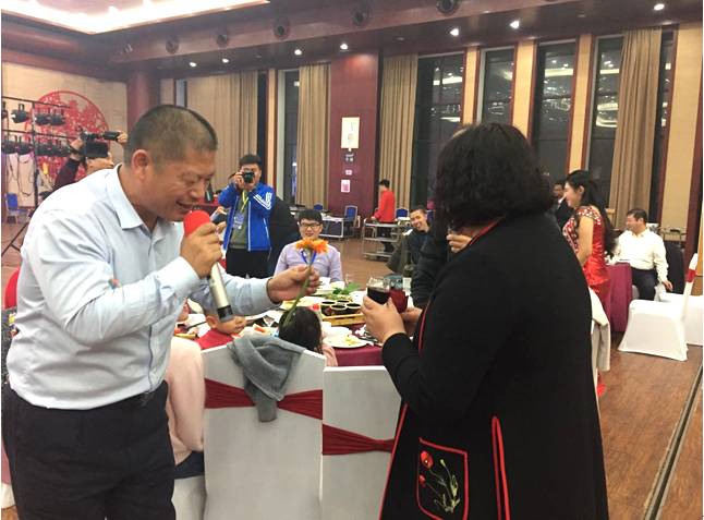 孙中岩在晚宴上为夫人献花,无论出差时多忙碌,他总会抽出时间为夫人精心挑选礼物。你绝对想不到,有次出差,为夫人买包时害怕堵车耽误工作进程,他在下班高峰期硬生生的挤进地铁,快到终点站时累的抱着包蹲在地上。正所谓夫妻同心其利断金,他们夫妇相濡以沫打拼多年的深厚感情让业内众人羡慕不已。