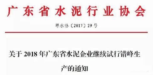 鉴于错峰生产带来的显著效果,经与省内重点水泥企业协商,确定2018年继续按《实施意见》的要求试行水泥企业错峰生产,并制定了广东省水泥企业在2018年春节期间、酷暑伏天和雨季开展错峰生产的实施方案(该方案已报备省经济和信息化委员会、省环境保护厅),现通知如下:
