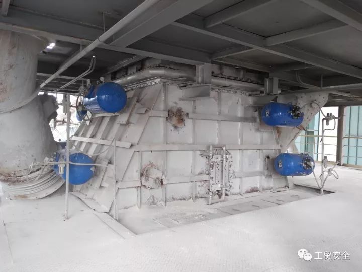 2)检查和清理结皮前,要提前与中控做好联系,系统要保持足够的负压,关闭空气炮的进口气源,将气罐内气体释放,断电并挂上“禁止合闸”牌。