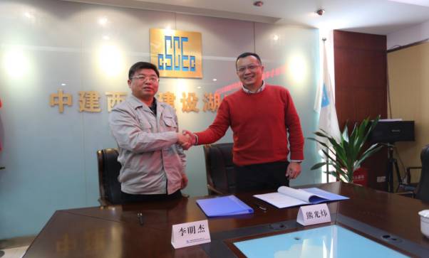 华新水泥执委副总裁、南部事业部总经理熊光炜,南部事业部市场总监陈民炜,华新湘钢公司总经理郑群等与中建西部建设股份有限公司副总经理李明杰,中建西部建设湖南有限公司总经理李曦等亲临签约现场,共同见证了签约仪式。