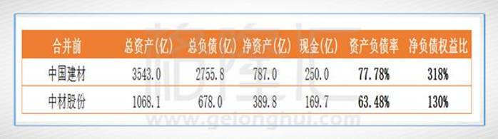 合并前,中材股份的控股股东为中国中材集团有限公司,公司主要从事水泥技术装备与工程服务、水泥和新材料三方面的业务,是全球最大的水泥技术装备与工程服务供应商,也是中国非金属材料行业的领先生产商。而中国建材的控股股东是中国建筑材料集团有限公司,公司的主营业务是集团主要业务为经营水泥、混凝土、轻质建材、玻璃纤维及复合材料以及工程服务业务。