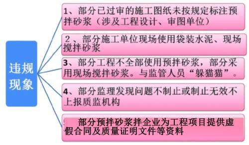 今年,中山市散装水泥管理办以“三禁”工作为重点,强化管理检查工作。9月份工程专项执法检查中,抽检了25个工程,对4个违规项目发出限期整改通知书,并对其中一个未按要求限期整改的项目按行政流程处理。11 月份在“三禁”及墙材革新专项联合执法检查中,抽检了30个工程、5个生产企业,对4个违规工程项目的相关单位按行政流程处理。在检查中常见的违规现场包括五个方面。