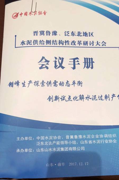 会议由中国水泥协会、晋冀鲁豫水泥企业协调组织泛东北去产能领导小组、山东省水泥行业协会主办。由山东山水水泥集团有限公司承办。会议议题分为政策发布,协会领导讲话和会议交流等。