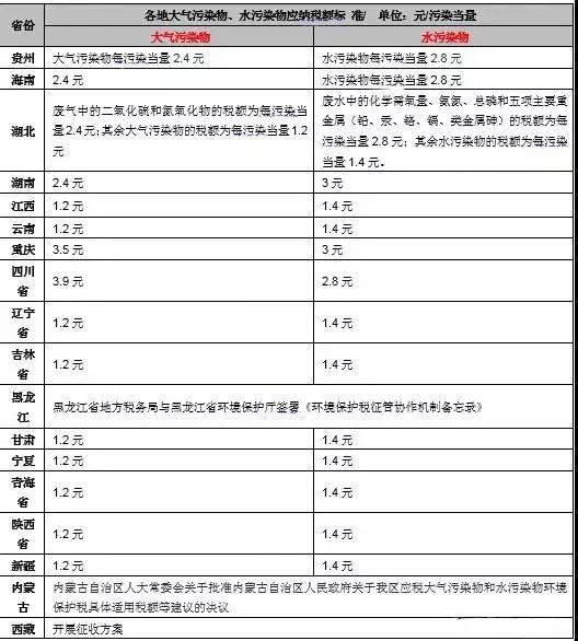 【各地环保税税额标准】请参照计算