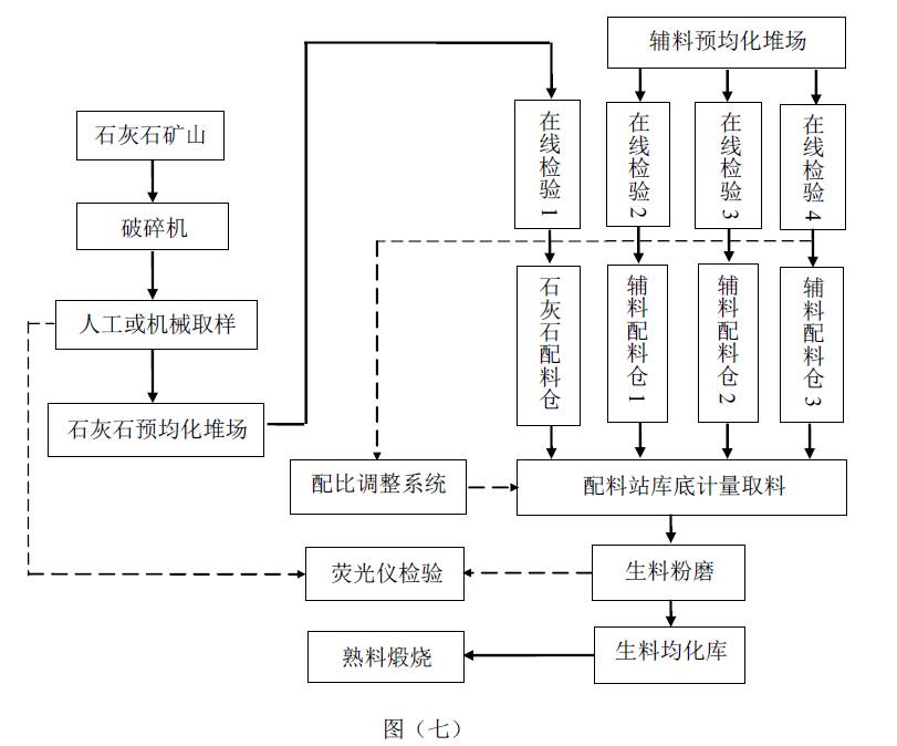 实现水泥生料前置控制,一直是有关专家和企业技术人员的梦想,“图七”是前置全检型水泥生料质量控制思路,将所有的入磨物料全部进行在线检验,提前确定入磨物料的原料配比,这是多年前有关业内人士提出的设想,属于前置式的生料质量控制,可走出事后调整的误区,控制思路是先进的,但是有几个问题应该注意: