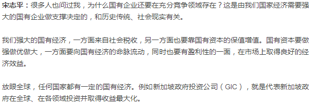 记者:一直以来,有人认为国有企业的迅速发展来源于“垄断”、“政策优惠”等,您对此怎么看?