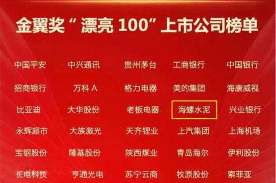 【水泥人网】据海螺集团官网消息 近日,“2017年最具投资价值上市公司”榜单、首届中国证券分析师金翼奖评选暨2018“漂亮100潜力榜”相继发布,海螺水泥荣登双榜,再创辉煌。这是海螺水泥继名列“2017年中国上市公司市值500强榜单”第74位后,再获殊荣。