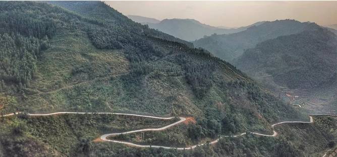 ▲ 硬化后的组组通公路像一条蛟龙在山间