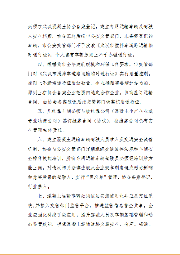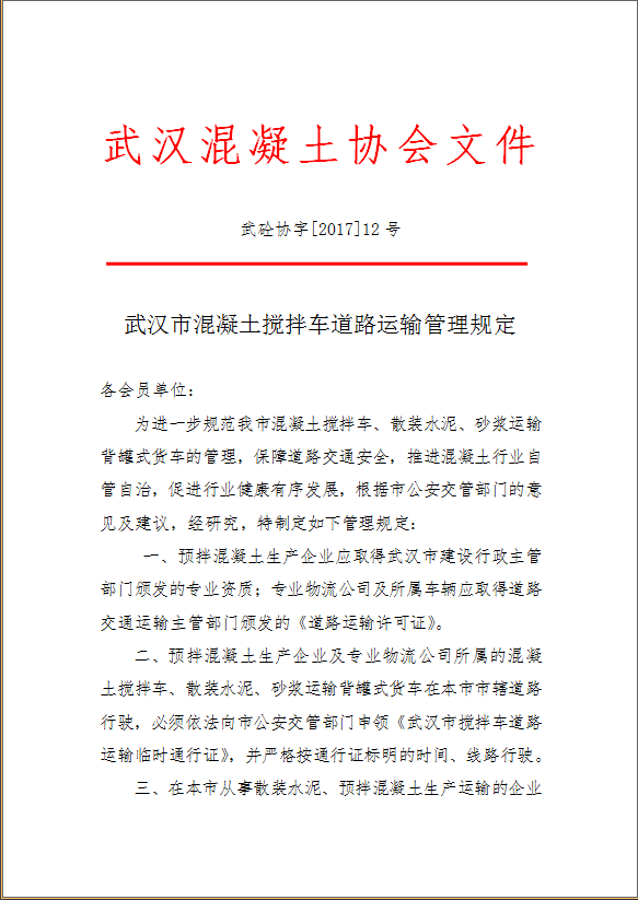 【水泥人网】为进一步规范武汉市混凝土搅拌车、散装水泥、砂浆运输背罐式货车的管理,保障道路交通安全,推进混凝土行业自管自治,促进行业健康有序发展,武汉混凝土协会根据市公安管部门的意见及建议,经研究,特制定《武汉市混凝土搅拌车道路运输管理规定》,详情如下: