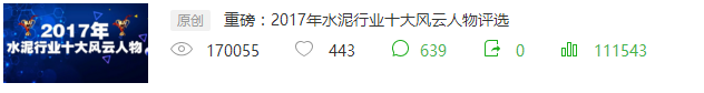 点评:通过此次的评选筛选出水泥行业的网络红人------“人气王”。水泥行业的健康发展离不开这些具有号召力企业家的影响及推动。
