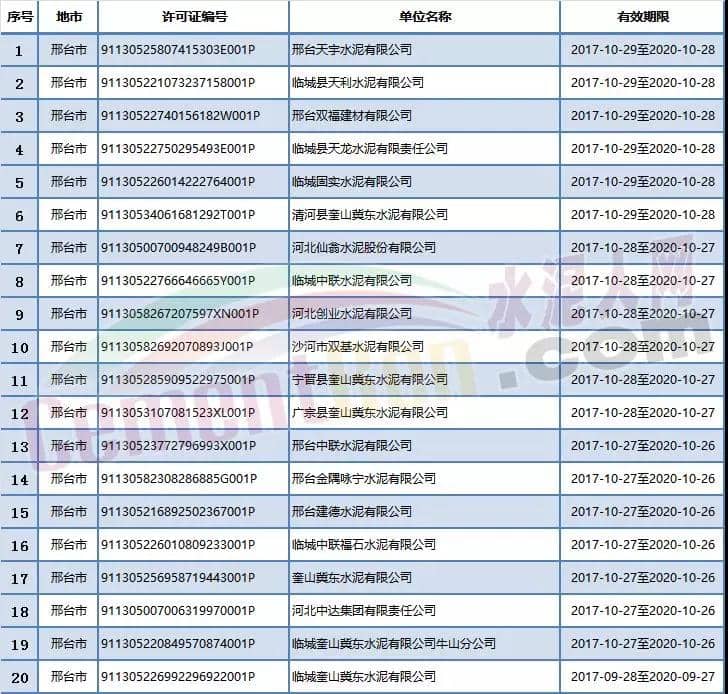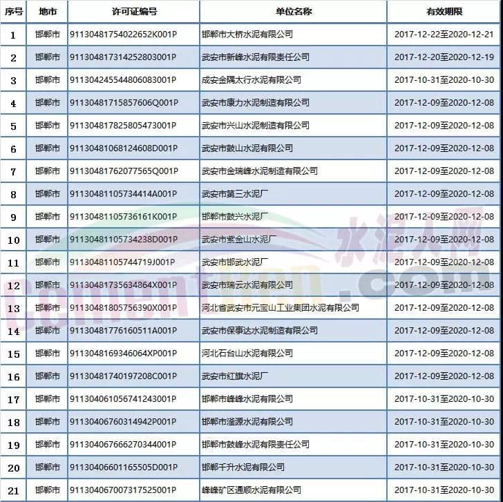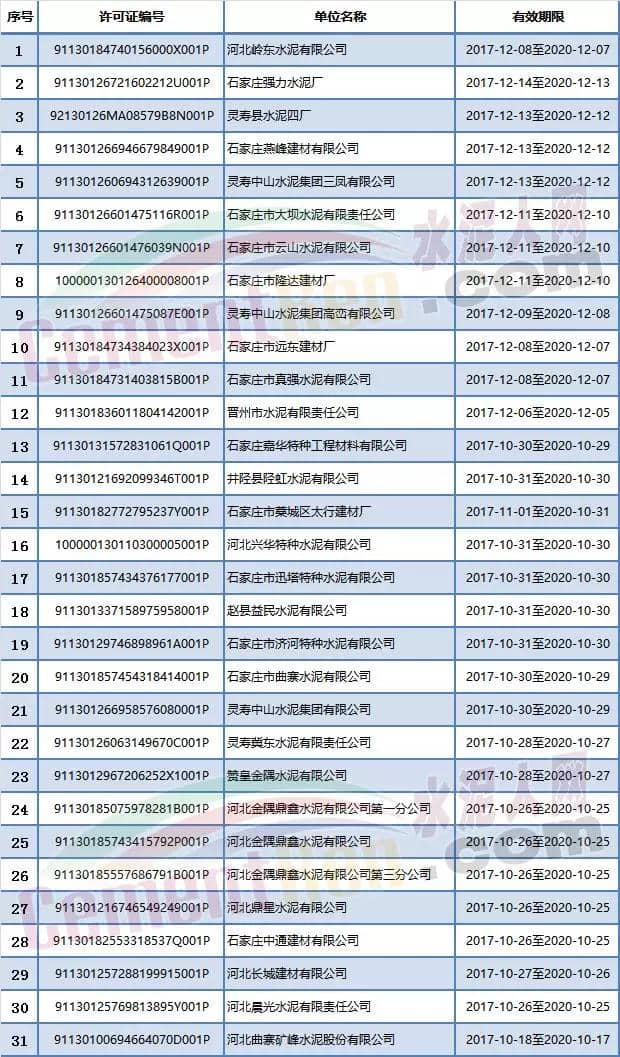 【水泥人网】河北省于2017年12月29日完成了全省火电、造纸、钢铁、水泥等15个重点行业排污许可证的核发,共核发1106张,不予核发461张。