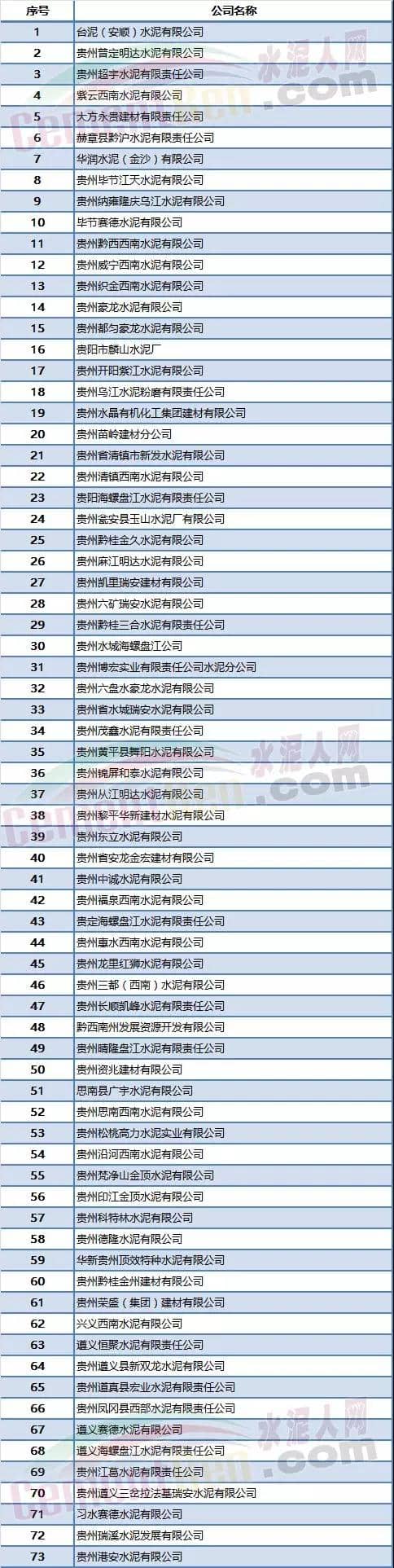 据水泥人网了解,目前贵州部分地区煤炭供应紧张,供应电力、水泥生产买不到煤,全省水泥企业很被动。本次限供将会影响到整个贵州省70多家水泥企业的正常运行,据某水泥企业负责人表示:目前限供已经造成部分水泥窑运转率低下,无法正常运转。部分水泥企业名单如下: