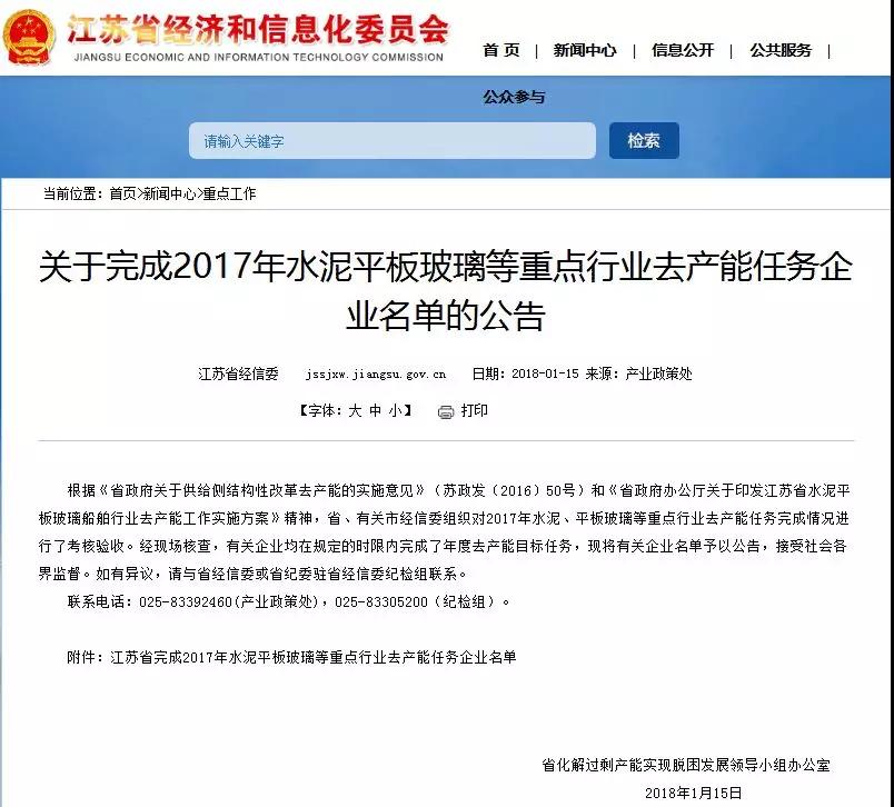 【水泥人网】日前,江苏省工信委发布了关于完成2017年水泥等重点行业去产能任务企业名单的公告。经现场核查,南京中联水泥有限公司等9家水泥企业均在规定的时限内完成了年度去产能目标任务。以下为公告原文:
