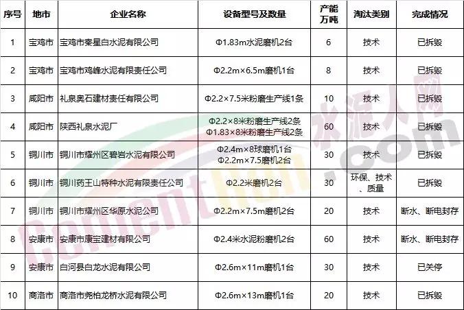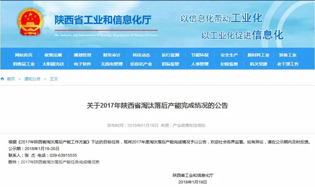 【水泥人网】日前,陕西省工业和信息化厅公告了2017年陕西省淘汰落后产能完成情况。
