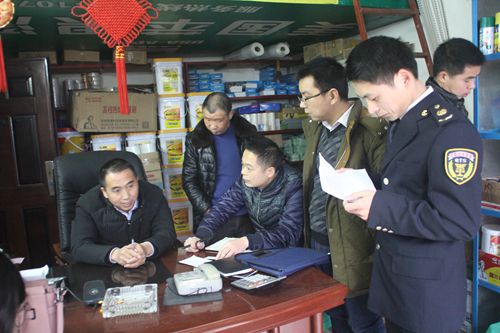 检查组在巫山县城区一建材销售点了解水泥销售情况。特约通讯员 陈廷权 摄