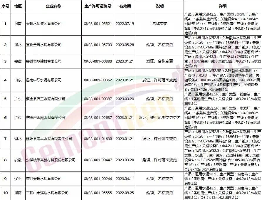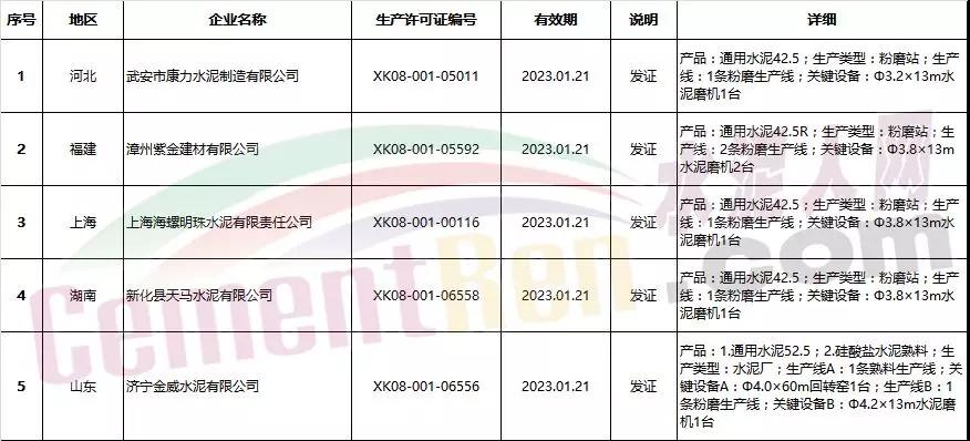 【水泥人网】国家质检总局于本月22日发放本月第三批生产许可证,本次共发放25家企业,25个编号生产许可证。其中新发证书五个编号,涉及名称及许可范围变更的共十个编号证书,到期延续的共八个编号证书,其他或兼并重组的2个编号证书。详情如下: