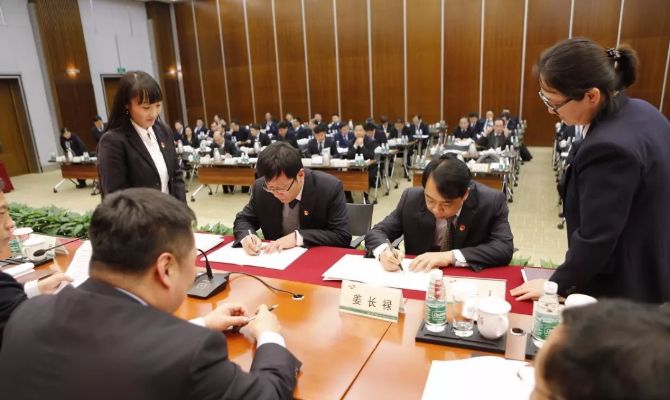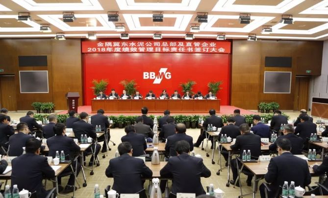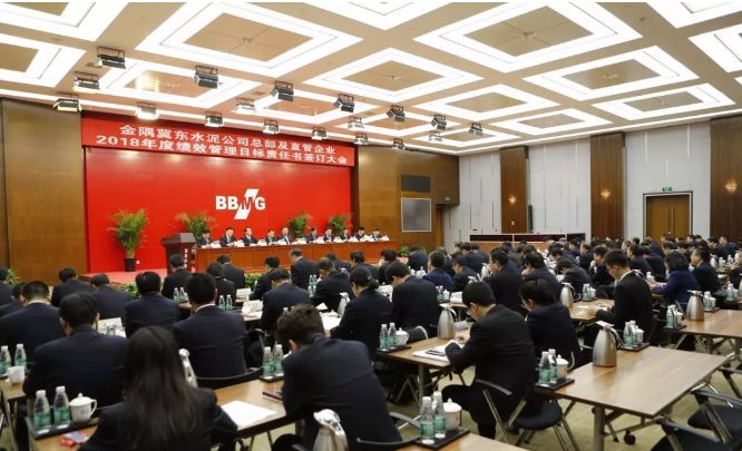 会上,公司副总经理刘素敏宣读了部分企业由金隅冀东水泥直接管理的文件精神和2018年绩效管理目标责任书编制说明,公司财务总监任前进宣读了总部部门2017年度考核兑现意见。公司党委书记、董事长姜长禄与23家企业及15个总部部门签订2018年度绩效管理目标责任书。朱长君、王川等6名同志作为企业及总部部门负责人代表先后表态发言。
