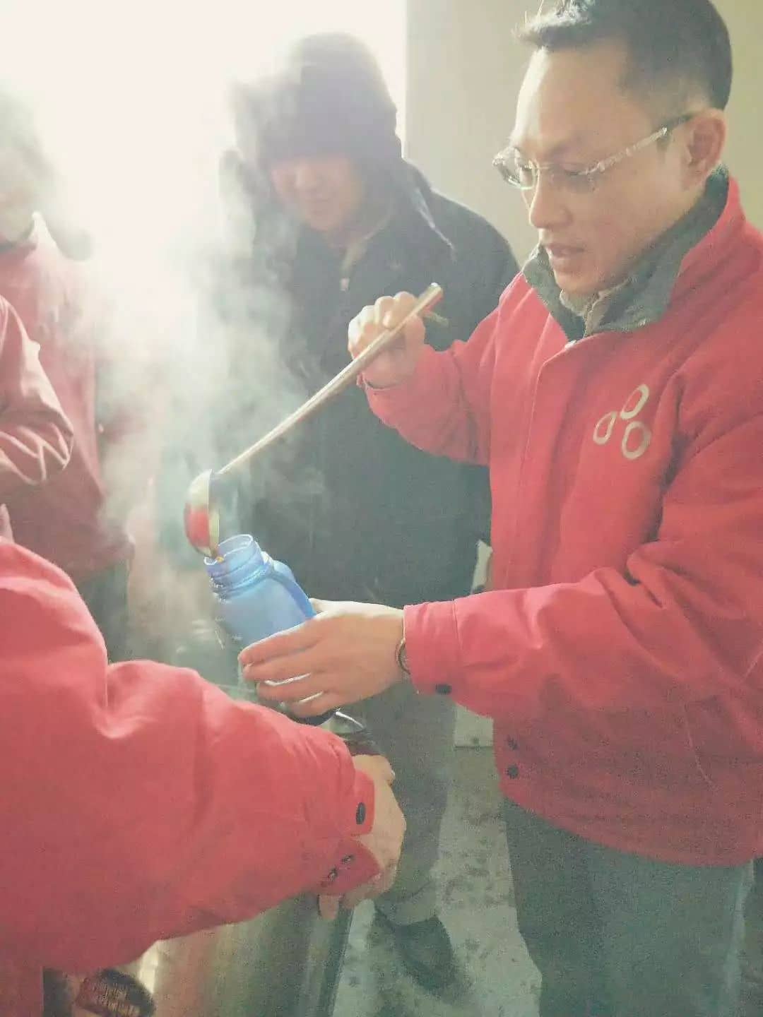在现场,林总亲自为每一个员工派发红糖姜水,代表台泥给大家送去冬日的温暖,也道一声同志们辛苦了。