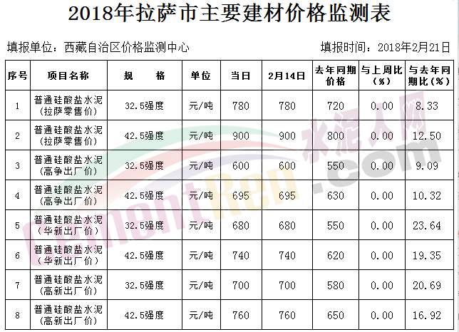 水泥人网】2018年开年,水泥最高价的地方还是西藏地区。据监测数据显示,西藏拉萨市建材市场