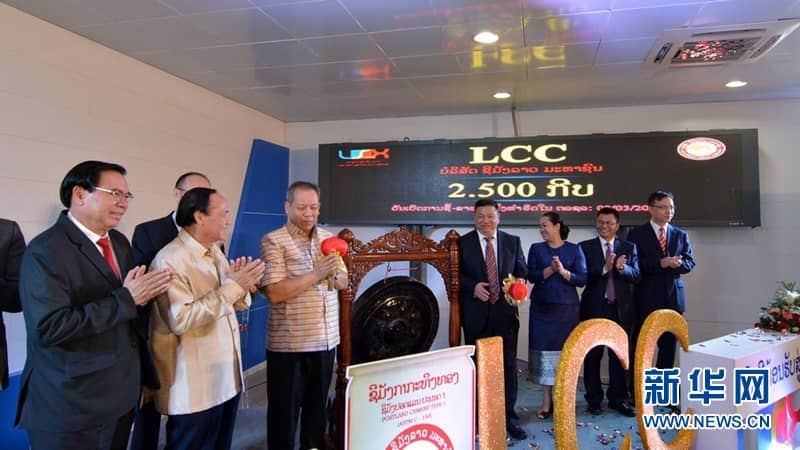 【水泥人网】3月2日,中老合资企业老挝水泥公众公司上市庆典在万象举行。中老合资企业老挝水泥公众公司2日在老挝证券交易所上市,成为老挝第七家上市企业。老挝水泥公众公司是中国云南国际经济技术合作公司(云南国际公司)和老挝农工发展有限公司合资成立的公司,主要开展水泥生产销售业务。 3月2日,在老挝证券交易所拍摄的老挝水泥公众公司上市现场。
