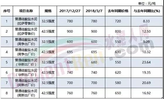 据水泥人网了解,根据拉萨市发改委价格监测中心公布的消息显示,高争建材、华新水泥、高新雪莲等水泥生产企业,针对全区重点项目执行政府指导价,分别为普通硅酸盐32.5(强度)500元、普通硅酸盐42.5(强度)600元、普通硅酸盐52.5(强度)800元,与上周持平。出厂价格普通硅酸盐32.5(强度)600元、普通硅酸盐42.5(强度)695元。而实际市场成交价远远高于政府指导价。