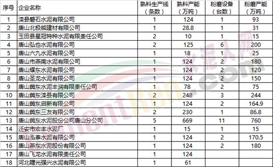 唐山地区熟料生产企业名单