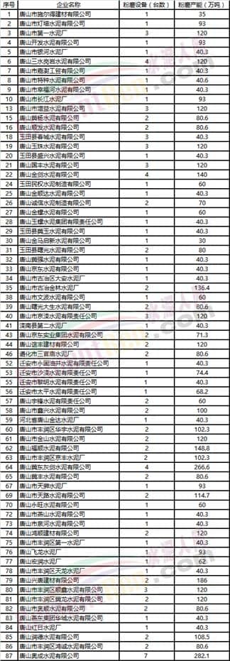 唐山市单体粉磨站企业