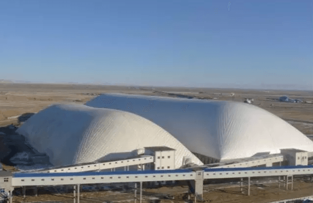 (天山股份阜康水泥全封闭式气膜原料棚外景)