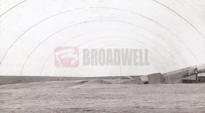 (天山股份阜康水泥全封闭式气膜原料棚内景)
