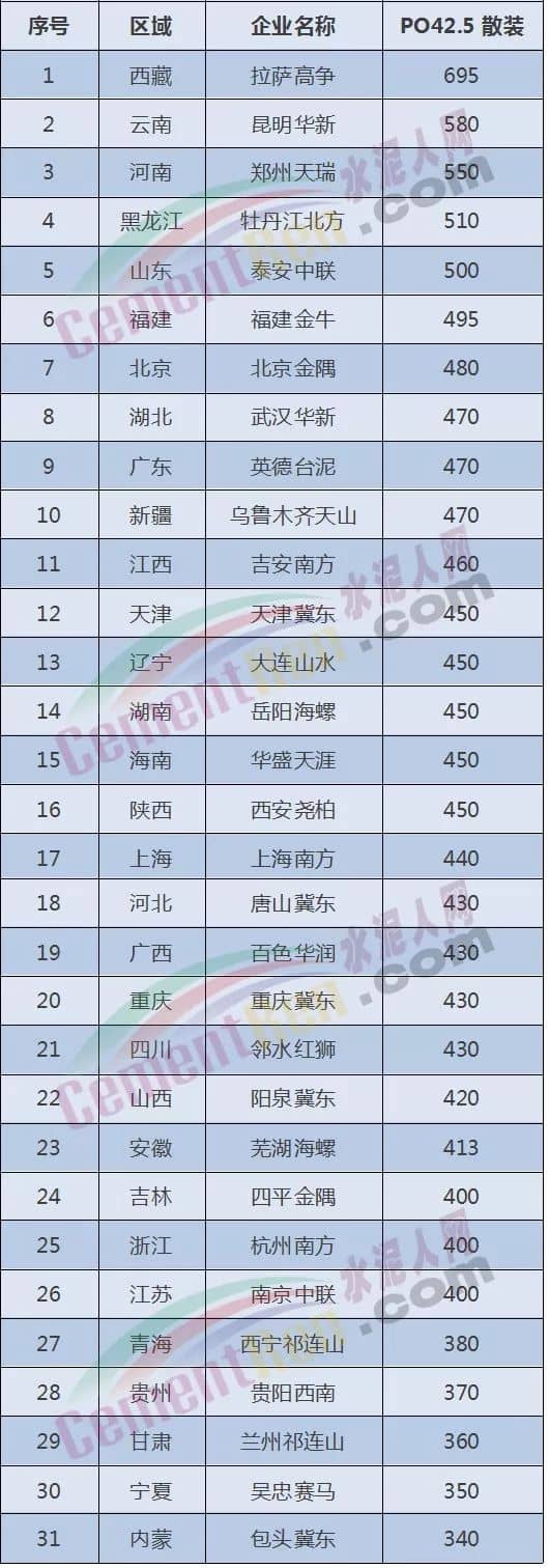 注:以上信息来源于水泥人网信息中心,如有差池,以实际报价为准!