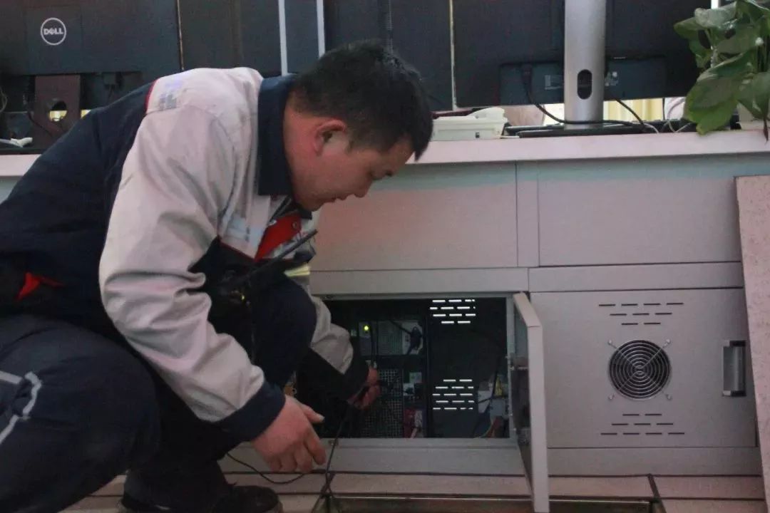 电气维修人员调试温度计和负压表,力求显示更精准。