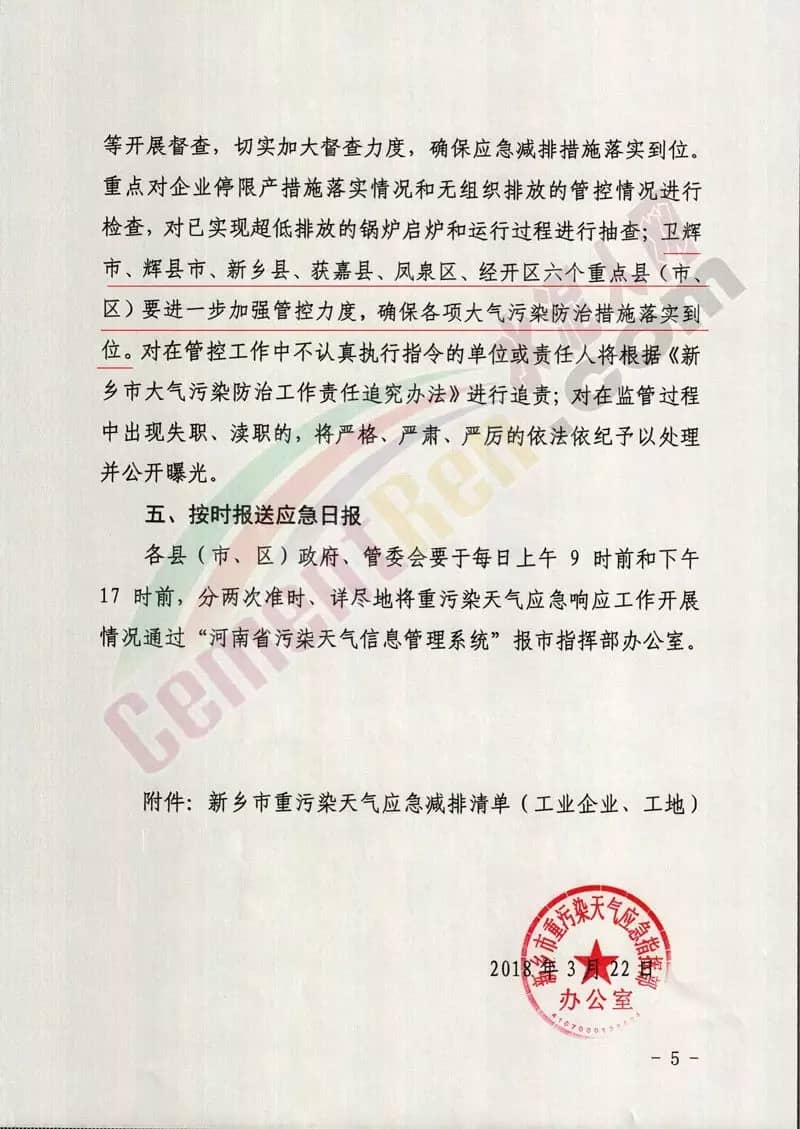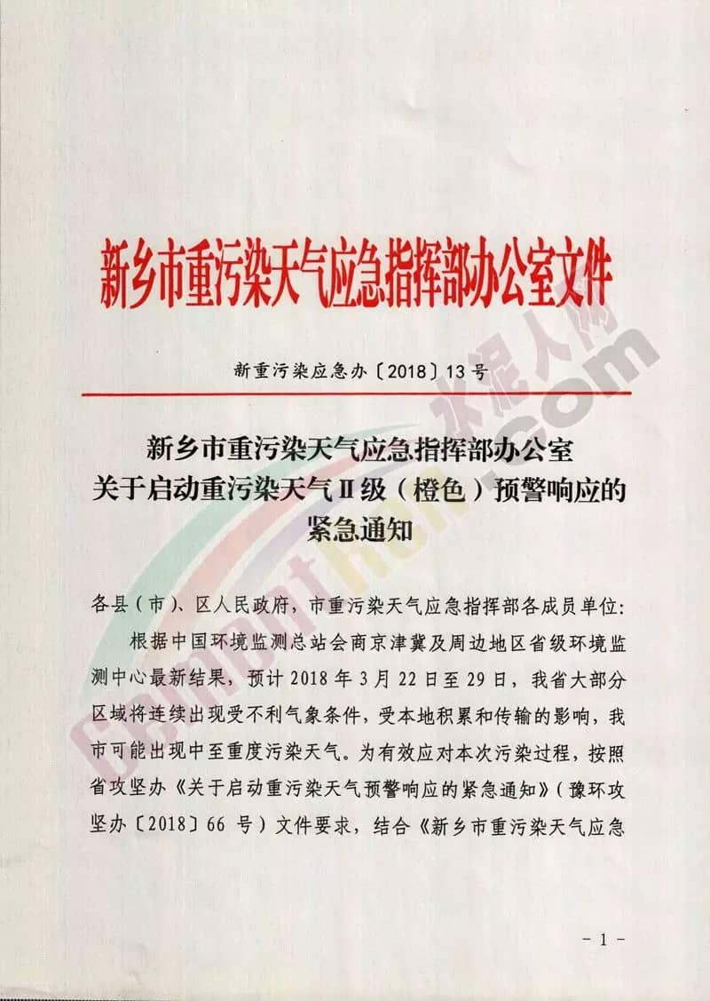 【水泥人网】水泥人网通讯员消息,3月22日河南新乡市重污染天气应急指挥部办公室发布《关于启动重污染天气II级(橙色)预警响应的紧急通知》,通知称,根据中国环境监测总站会商京津冀及周边地区省级环境监测中心最新结果,预计2018年3月22日29日,河南省大部分区域将出现中至重度污染天气,为有效应对本次污染过程,要求下属水泥企业自2018年3月22日16时起启动新乡市重污染天气II级(橙色)预警响应,预警解除时间根据临近空气质量预报结果进行调整。