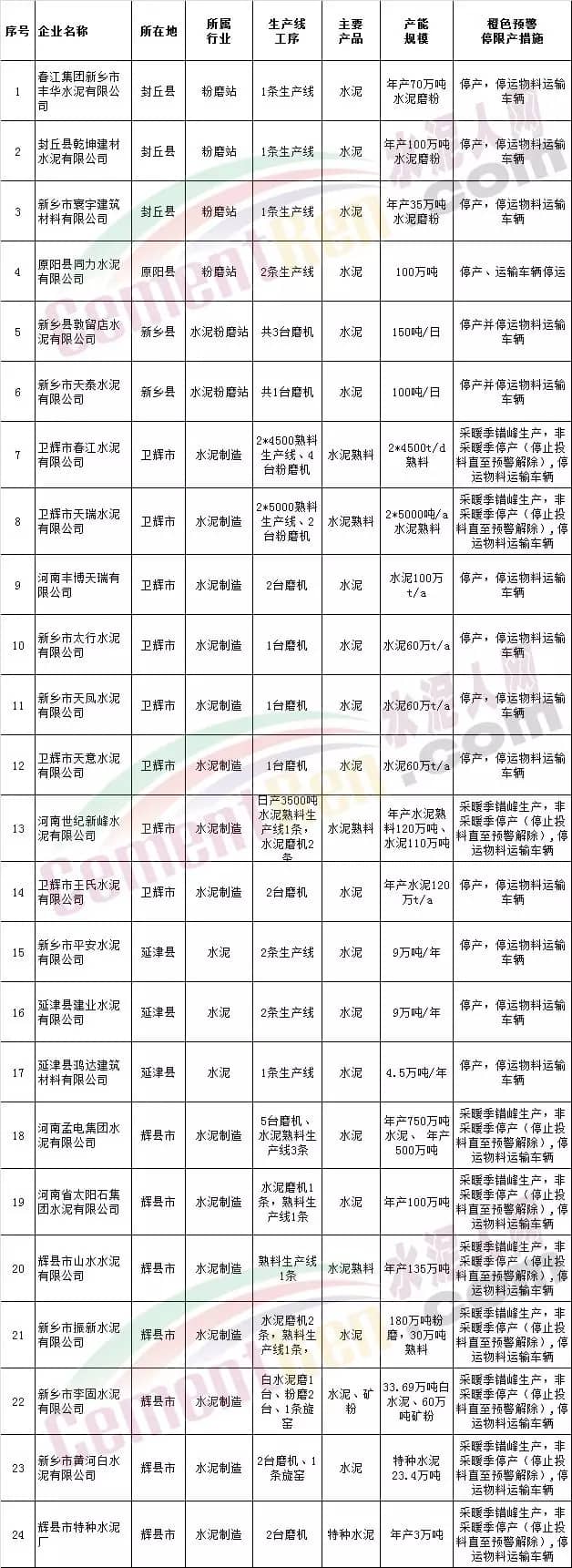 水泥企业停产限产执行要求如下: