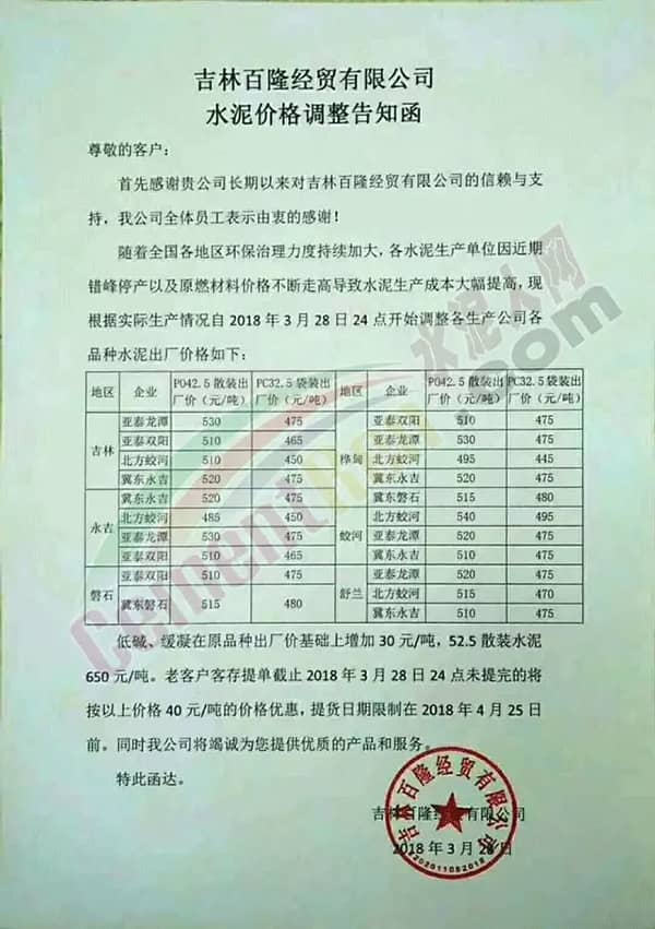 【水泥人网】据水泥人网通讯员消息,随着下游基建工地陆续开工,各区域水泥市场一片繁忙景象,东北辽、吉、黑、蒙区域水泥企业也将陆续结束采暖季错峰生产开窑投产。因相对库位较低,同时受周边区域水泥价格上调影响,东北区域近期出现水泥价格大幅上调现象。 图:朝阳山水东鑫水泥有限公司