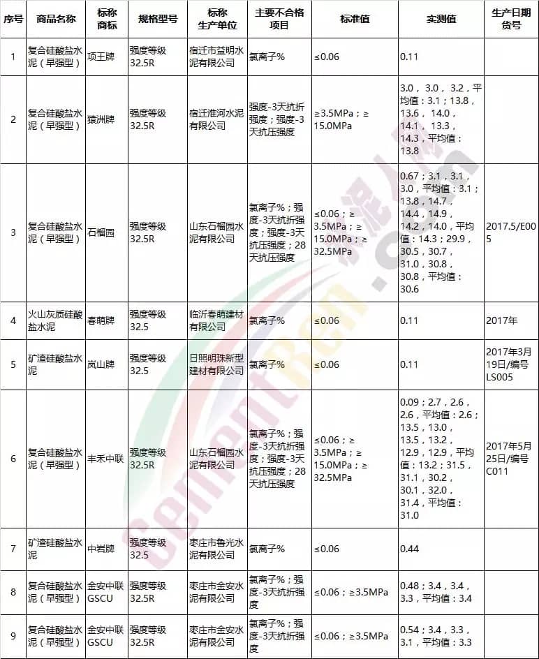据了解,导致氯离子超标,强度不够等不合格的主因可能是在水泥生产阶段,相关工序控制不合理导致,也可能是在水泥存储运输阶段管理不合理导致。