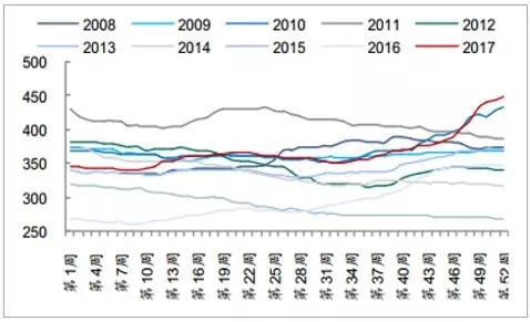 目前北方十五省进入错峰生产阶段已经一至两个月,并至少持续到明年 3 月中旬;同时伴随最强错峰季,部分区域因受雾霾天气影响,已先后启动重污染天气应急响应;南方局部地区额外限产则再度超出市场预期。从目前市场表现来看,水泥价格在冬季仍然实现稳步上涨,最新全国水泥平均价格实现 448.3 元/吨,达到历史同期最高位水平;水泥库容比目前为 50%,处于近年来历史最低水平。这个冬季,整个水泥行业完全印证了我们 2017 年 10 月初发布冬季策略做出的行业预判《这个冬天不太冷》以及 12 月初发布的年度策略报告《新均衡,新思路》,暖冬格局基本形成。