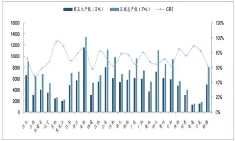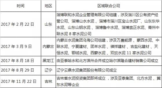2016 年以来,在供给侧改革和国企改革双重推动下,以中国建材集团和中材集团合并、金隅集团和冀东集团组建合资公司(终止重组,调整方案为成立合资公司)、华新水泥整合拉法基瑞安水泥资产为代表的大企业间陆续拉开整合序幕,标志我国水泥企业间的整合进入强强联合阶段。 与此同时,区域层面产能整合也已拉开帷幕,内蒙、 山东、 辽宁、 吉林等多个地方的陆续成立区域水泥联合公司, 开启了各区域产能整合进程。随着水泥行业整合的逐步推进,区域集中度稳步提升, 截至 2016 年我国前十大水泥企业集团熟料产能集中度已从 2015 年的 54%提升至 57%;各区域竞争格局也逐步趋于稳定,目前全国各区域已形成较高区域市占率, 2017 年各省市前五大水泥企业熟料产能集中度基本已达 60%及以上水平。 据 2016 年工信部《建材工业发展规划(2016-2020 年)》提出目标,至 2020 年前十大水泥熟料集中度将提升至 60%以上; 2017 年 6 月,中国水泥协会发布《水泥工业“十三五”发展规划》 进一步明确各项目标, 将 2020 年前十大熟料产能集中度目标提升至 80%以上;随后 7 月发布的《2020 年水泥行业去产能行动计划》 提出目标,至 2020 年全国前十大熟料产能集中度达到 70%,水泥产能集中度达到 60%,并力争 10 个省区内前 2 家大企业熟料产能集中度达到 65%。行业集中度的提升有助于提高区域主导企业的市场控制能力,加强区域市场协调,从而避免市场无序竞争,提升水泥行业企业对未来发展的信心,也有利于稳定市场对企业盈利的预期。 目前水泥企业区域协同已逐渐成为行业内普遍共识,区域协同达到空前高度。