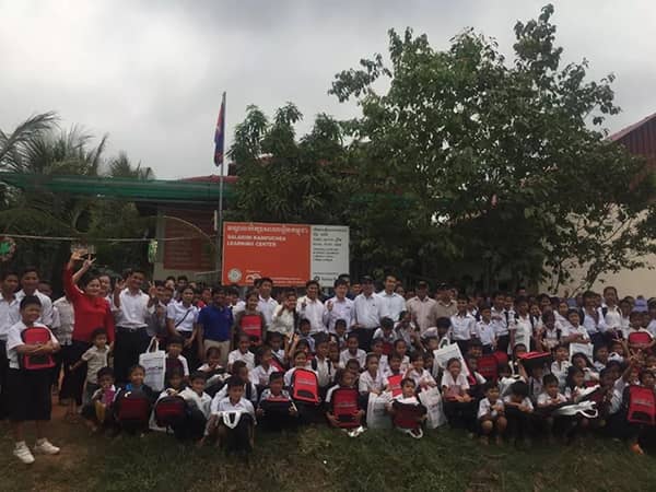 马德望海螺水泥公司向柬埔寨非政府外教育学校230名学生捐赠了书包套装、排球、足球等学习用品,并向该校的13名教师职工赠送了纪念品。