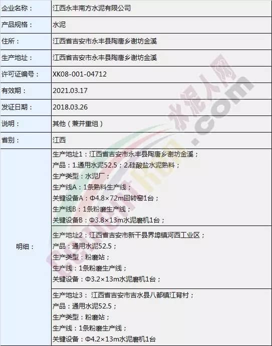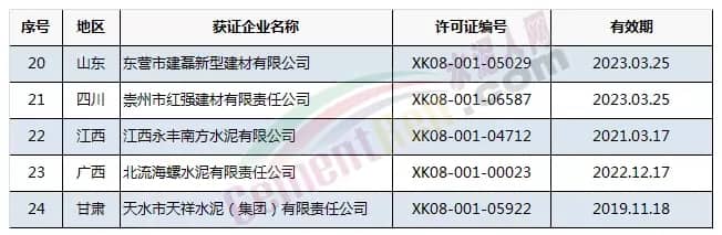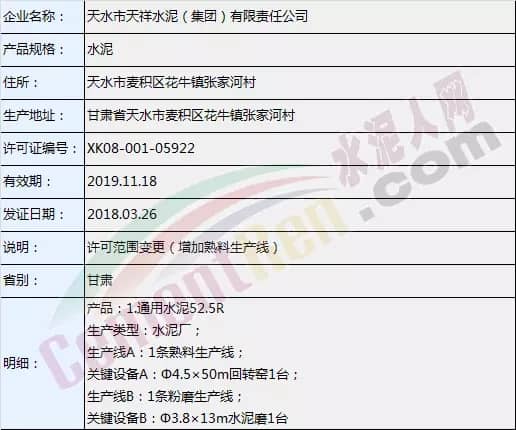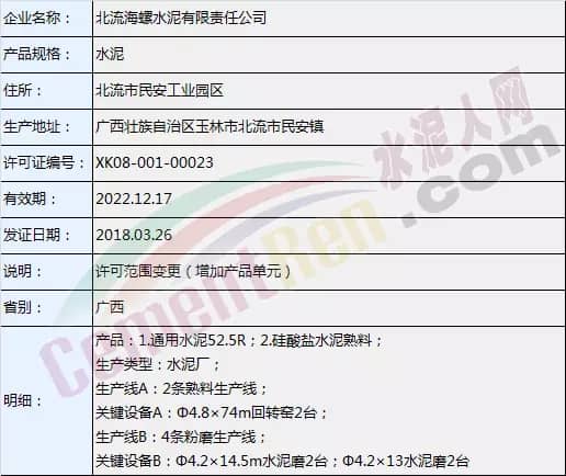 【水泥人网】2018年3月26日国家质检总局发放3月份第4批24家水泥企业生产许可证。其中新发证书12家,到期延续7家,涉及变更的5家。其中涉及名称变更的2家,许可证范围变更的2家,涉及其他变更项目的1家。 一、发证 二、延续 三、变更 1、发证、名称变更 2、其他(兼并重组) 3、许可证范围变更(增加产品单元) 4、许可范围变更(增加熟料生产线)